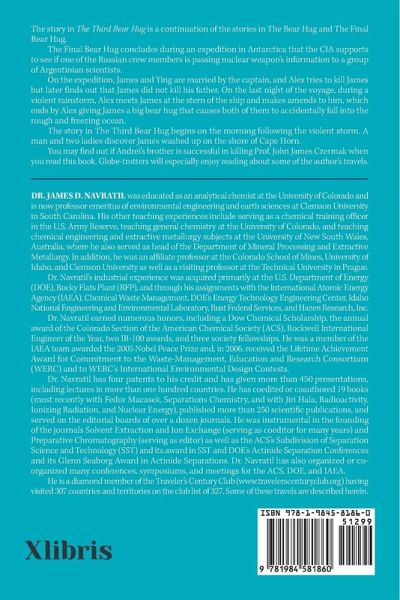 The Third Bear Hug is a continuation of the stories in The Bear Hug and The Final Bear Hug. The Final Bear Hug concludes during an expedition in Antarctica that Tim supports to see if one of the Russian crew members is passing nuclear weapon's information to a group of Argentinian scientists. On the expedition, James and Ying are married by the captain, and Alex tries to kill James but later finds out that James did not kill his father. On the last night of the voyage, during a violent rainstorm, Alex meets James at the stern of the ship and makes amends to him, which ends by Alex giving James a big bear hug that causes both of them to accidentally fall into the rough and freezing ocean. The story in The Third Bear Hug begins on the morning following the violent storm. A man and two ladies discover James washed up on the shore of Cape Horn. Author's note: You may find out if Alexei is successful in killing Prof. John James Czermak when you read this book. Globe-trotters will especially enjoy reading about some of the author's travels.
