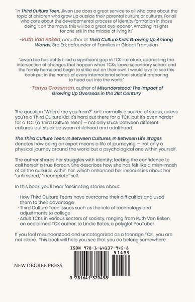 The question "Where are you from?" isn't normally a source of stress, unless you're a Third Culture Kid. It's hard out there for a TCK, but it's even harder for a TCT (a Third Culture Teen) - not only stuck between different cultures, but stuck between childhood and adulthood. The Third Culture Teen: In Between Cultures, In Between Life Stages denotes how being an expat means a life of journeying - not only a physical journey around the world but a psychological one within yourself. The author shares her struggles with identity; lacking the confidence to call herself a true Korean. She describes how she has felt like a mish-mash of all the cultures within her, which enhanced her insecurities about her "unfinished," "incomplete" self. In this book, you'll hear fascinating stories about: How Third Culture Teens have overcome their difficulties and used them to their advantage Third Culture Teen issues such as the role of technology and adjustments to college Adult TCKs in various sectors of society, ranging from Ruth Van Reken, an acclaimed TCK author, to Lindie Botes, a polyglot YouTuber If you feel misunderstood and uncategorized as a teenage TCK, you are not alone. This book will help you see that you do belong somewhere.
