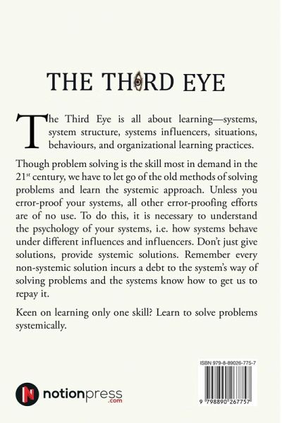 The Third Eye is all about learning-systems, system structure, systems influencers, situations, behaviours, and organizational learning practices. Though problem solving is the skill most in demand in the 21st century, we have to let go of the old methods of solving problems and learn the systemic approach. Unless you error-proof your systems, all other error-proofing efforts are of no use. To do this, it is necessary to understand the psychology of your systems, i.e. how systems behave under different influences and influencers. Don't just give solutions, provide systemic solutions. Remember every non-systemic solution incurs a debt to the system's way of solving problems and the systems know how to get us to repay it. Keen on learning only one skill? Learn to solve problems systemically.
