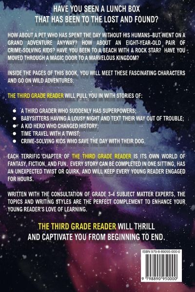 Looking for a fun third-grade reading comprehension book for kids age 8 and above? Look no further, here in The Third Grade Reader we bring you many stories perfectly designed for this age group. Inside the pages of this book, you will meet these fascinating characters and go on wild adventures. The Third Grade Reader will pull you in with stories of: ¿ A Third Grader who suddenly has superpowers;¿ Babysitters having a lousy night and text their way out of trouble;¿ A kid hero who changed history;¿ Time travel with a twist;¿ Crime-solving kids who save the day with their dog. Each terrific chapter of The Third Grade Reader is its own world of fantasy, fiction, and fun. Every story can be completed in one sitting, has an unexpected twist or quirk, and will keep every young reader engaged for hours. Written with the consultation of grade 3-4 subject matter experts, the topics and writing styles are the perfect complement to enhance your young reader's love of learning. The Third Grade Reader will thrill and captivate you from beginning to end.