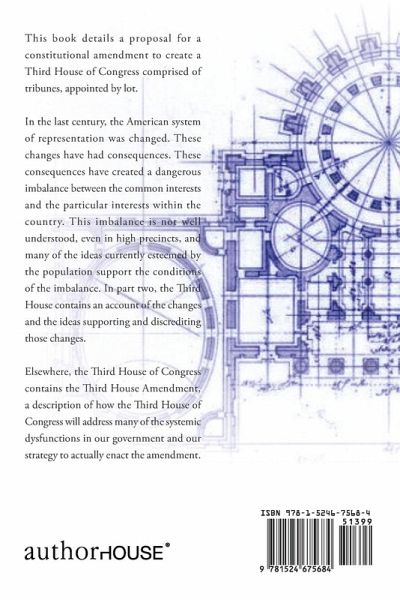 This book details a proposal for a constitutional amendment to create a Third House of Congress comprised of tribunes, appointed by lot. In the last century, the American system of representation was changed. These changes have had consequences. These consequences have created a dangerous imbalance between the common interests and the particular interests within the country. This imbalance is not well understood, even in high precincts, and many of the ideas currently esteemed by the population support the conditions of the imbalance. In part two, the Third House contains an account of the changes and the ideas supporting and discrediting those changes. Elsewhere, the Third House of Congress contains the Third House Amendment, a description of how the Third House of Congress will address many of the systemic dysfunctions in our government and our strategy to actually enact the amendment.
