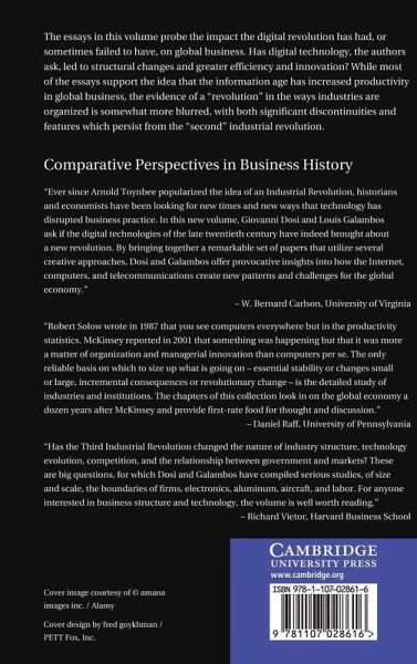 The essays in this volume probe the impact the digital revolution has had, or sometimes failed to have, on global business. Has digital technology, the authors ask, led to structural changes and greater efficiency and innovation? While most of the essays support the idea that the information age has increased productivity in global business, the evidence of a 'revolution' in the ways industries are organized is somewhat more blurred, with both significant discontinuities and features which persist from the 'second' industrial revolution.