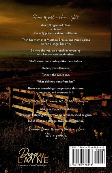 Home is just a place, right? Arien Brogan had plans. In Denver. The only place she'd ever call home. Then her mom met Matthew Brooks, and Arien's plans were no longer her own. So here she was, on a ranch in Wyoming, with her two new stepbrothers. She'd never met cowboys like them before. Kellan, the sullen one. Tanner, the sweet one. What did they want from her? There was something strange about this town, their ways, and everyone in it. Everything that comes in threes is perfect. Where in the hell was she? She wasn't staying anyway. Come summer, she'd be gone. But if plans can change, then dreams can too. Because home is more than a place. It's a feeling.