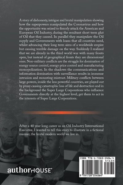 A story of dishonesty, intrigue and brutal manipulation showing how the superpowers manipulated the Coronavirus and how the opportunity was seized to fiercely attack the American and European Oil Industry, during the resultant short term glut of Oil that they caused. In parallel they manipulate the Oil supply and Governments with loans that all countries need, whilst advancing their long term aims of a worldwide empire but causing terrible damage on the way. Suddenly I realized that we are already in the third world war with many fronts open, but instead of geographical fronts they are dimensional ones. Non-military conflicts are the struggle for domination of energy source control, energy price control and manufacturing monopolization. In the shadows the communications and information domination with surveillance results in immense intrusion and mounting mistrust. Military conflicts between large powers, inside the less powerful countries, are played out by proxy causing catastrophic loss of life and destruction and in the background the Super Large Corporations who influence Governments directly at the highest level, get them to act in the interests of Super Large Corporations.