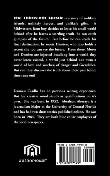 The Thirteenth Apostle is a story of unlikely friends, unlikely heroes, and unlikely gifts. A Midwestern farm boy decides to leave his small world behind after he learns a startling truth- he can catch glimpses of the future. But before he can reach his final destination, he meets Damien, who also holds a secret: she too can see the future. From there, Moses and Damien are injected headlong into a world they never knew existed, a world just behind our own; a world of love and witches; of danger and Grendelles. But can they discover the truth about their past before time runs out.