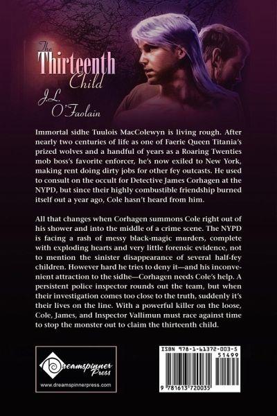 A Section Thirteen story Immortal sidhe Tuulois MacColewyn is living rough. After nearly two centuries of life as one of Faerie Queen Titania's prized wolves and a handful of years as a Roaring Twenties mob boss's favorite enforcer, he's now exiled to New York, making rent doing dirty jobs for other fey outcasts. He used to consult on the occult for Detective James Corhagen at the NYPD, but since their highly combustible friendship burned itself out a year ago, Cole hasn't heard from him. All that changes when Corhagen summons Cole right out of his shower and into the middle of a crime scene. The NYPD is facing a rash of messy black-magic murders, complete with exploding hearts and very little forensic evidence, not to mention the sinister disappearance of several half-fey children. However hard he tries to deny it-and his inconvenient attraction to the sidhe-Corhagen needs Cole's help. A persistent police inspector rounds out the team, but when their investigation comes too close to the truth, suddenly it's their lives on the line. With a powerful killer on the loose, Cole, James, and Inspector Vallimun must race against time to stop the monster out to claim the thirteenth child.