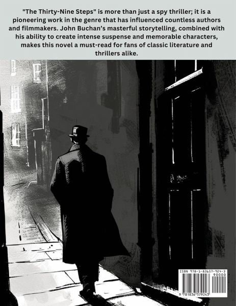 The Thirty-Nine Steps by John Buchan, published in 1915, is a fast-paced spy thriller and adventure novel that has become a classic of the genre. It is the first in a series of novels featuring the character Richard Hannay, an ordinary man caught up in extraordinary events. The story begins with Richard Hannay, a Scottish expatriate living in London, leading a mundane life after returning from South Africa. His routine is disrupted when a man named Franklin Scudder, a nervous and mysterious stranger, seeks refuge in his flat. Scudder reveals that he is a spy and has uncovered a plot involving an international conspiracy to assassinate a political leader and ignite a war in Europe. He warns Hannay that he is being pursued by dangerous enemies. When Scudder is murdered in Hannay's flat, Hannay realizes he is now the target of both the conspirators and the police, who suspect him of the crime. Armed with Scudder's cryptic notes, which include references to the "thirty-nine steps," Hannay flees to Scotland, where he must stay one step ahead of his pursuers. While on the run, Hannay faces a series of dangerous and suspenseful encounters, including near-captures, daring escapes, and betrayals. Using his wits and courage, he gradually uncovers the truth about the conspiracy and the meaning of the "thirty-nine steps." The novel culminates in a thrilling showdown in which Hannay thwarts the villains and saves the day.Themes Ordinary Heroism: Hannay is an everyman who rises to the occasion when thrust into extraordinary circumstances. Patriotism and Duty: The novel reflects early 20th-century anxieties about national security and the looming threat of war. Adventure and Escapism: It celebrates action, ingenuity, and the thrill of evading danger in dramatic landscapes. Trust and Betrayal: Hannay must navigate a world of shifting loyalties and hidden identities, unsure of whom to trust. Buchan's writing is lean and fast-paced, with a focus on action and suspense. The story moves briskly, driven by its high-stakes plot and Hannay's resourcefulness. The tone is one of excitement and urgency, with occasional moments of humor and introspection. The Thirty-Nine Steps is one of the earliest examples of the modern spy thriller and has had a lasting impact on the genre. Its blend of intrigue, action, and ordinary heroism influenced writers like Ian Fleming and Alfred Hitchcock, who famously adapted the novel into a 1935 film (with significant plot changes). The book remains popular for its engaging storytelling and is often celebrated as a quintessential "man-on-the-run" adventure. It has been adapted into films, radio plays, and stage productions, cementing its status as a timeless classic.