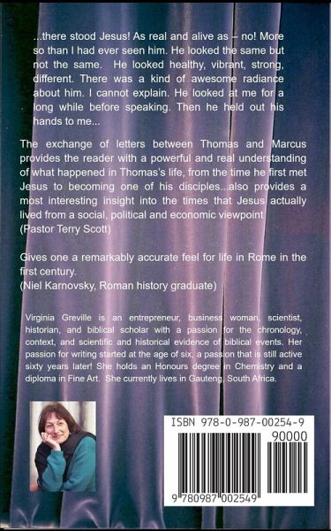 Those who love the TV series 'The Chosen' will love this book. The Thomas Letters takes the reader on an intriguing journey in the mind of the character Thomas, one of Jesus' disciples. We follow him in his cynical phase, his conviction phase, his disillusionment phase, and finally as he reaches his personal epiphany. For Thomas it is the point of no return when all his doubts and fears about the truth of Jesus as the Son of God, are finally laid aside. This is no ordinary book. The entire book is woven around real historical events (some of them quite spicy) in the Roman Empire during the years of Jesus's life and following his crucifixion and resurrection. The character Thomas is drawn as a businessman who works through things systematically and logically. The exchange of letters between him and his Roman friend gives the reader a unique perspective on this familiar story. Subtle details of life in Judea in the first century bring the whole story of Jesus vibrantly to life. The book ends poignantly and rather unexpectedly. Read it and take a journey that will move you, inform you, and draw you closer to an intimate knowledge of the Greatest Person in history.