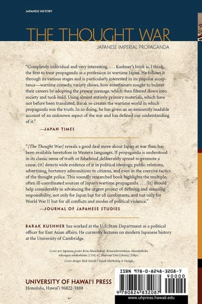 "Completely individual and very interesting.... Kushner's book is, I think, the first to treat propaganda as a profession in wartime Japan. He follows it through its various stages and is particularly interested in its popular acceptance - wartime comedy, variety shows, how entertainers sought to bolster their careers by adopting the prewar message, which then filtered down into society and took hold. Using almost entirely primary materials, which have not before been translated, Barak re-creates the wartime world in which propaganda was the truth. In so doing, he has given us an eminently readable account of an unknown aspect of the war and has defined our understanding of it." - Japan Times "[The Thought War] reveals a good deal more about Japan at war than has been available heretofore in Western languages.... This soundly researched book highlights the multiple, often ill-coordinated sources of Japan's wartime propaganda.... [It] should help considerably in advancing the urgent project of defining and assessing responsibility, not only for Japan but for all combatants, and not only for World War II but for all conflicts and modes of political violence." - Journal of Japanese Studies"