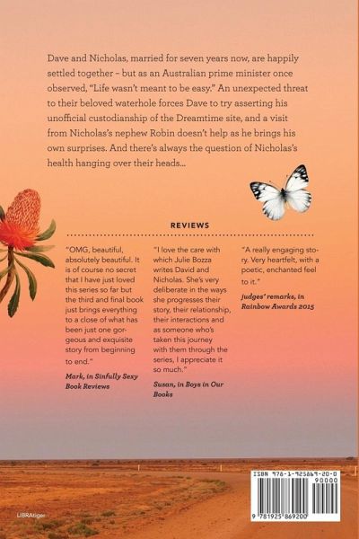 Dave and Nicholas, married for seven years now, are happily settled together – but as an Australian prime minister once observed, "Life wasn’t meant to be easy." An unexpected threat to their beloved waterhole forces Dave to try asserting his unofficial custodianship of the Dreamtime site, and a visit from Nicholas’s nephew Robin doesn’t help as he brings his own surprises. And there’s always the question of Nicholas’s health hanging over their heads …