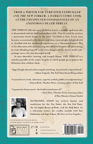 Dripping with voice, The Threat is a hilariously relatable story of self-doubt, aging, and frustration. Literary yet accessible, Steinâ s story explores what happens when the only way you can live is by feeling like you might die.