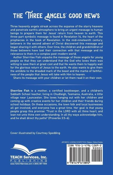 Three heavenly angels streak across the expanse of the starry heavens and penetrate earth's atmosphere to bring an urgent message to human beings to prepare them for Jesus' return from heaven to earth. This three-part symbolic message is found in Revelation 14, the heart of the prophecies of the book of Revelation. Believers in the second advent of Christ in the mid-nineteenth century discovered this message and began sharing it with others. Over time, many of the children and grandchildren of those believers have lost their connection with that message and its relevance for them in a complex post-modern world. Author Sherrilee Fish unpacks the message of those angels for young people so that they can understand that the God who loves them was willing to save them at great cost and that He wants them to happily wait for the glorious return of Jesus to the earth. He also wants to give them the antidote to the dreaded mark of the beast and the marks of faithfulness of the people that Jesus will take with Him to heaven. Share its message with your children or let them read it on their own.