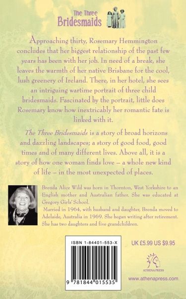 Approaching thirty, Rosemary Hemmington concludes that her biggest relationship of the past few years has been with her job. In need of a break, she leaves the warmth of her native Brisbane for the cool, lush greenery of Ireland. There, in her hotel, she sees an intriguing wartime portrait of three child bridesmaids. Fascinated by the portrait, little does Rosemary know how inextricably her romantic fate is linked with it. The Three Bridesmaids is a story of broad horizons and dazzling landscapes; a story of good food, good times and of many different lives. Above all, it is a story of how one woman finds love - a whole new kind of life - in the most unexpected of places. Brenda Alice Wild was born in Thornton, West Yorkshire to an English mother and Australian father. She was educated at Gregory Girls' School. Married in 1964, with husband and daughter, Brenda moved to Adelaide, Australia in 1969. She began writing after retirement. She has two daughters and five grandchildren.