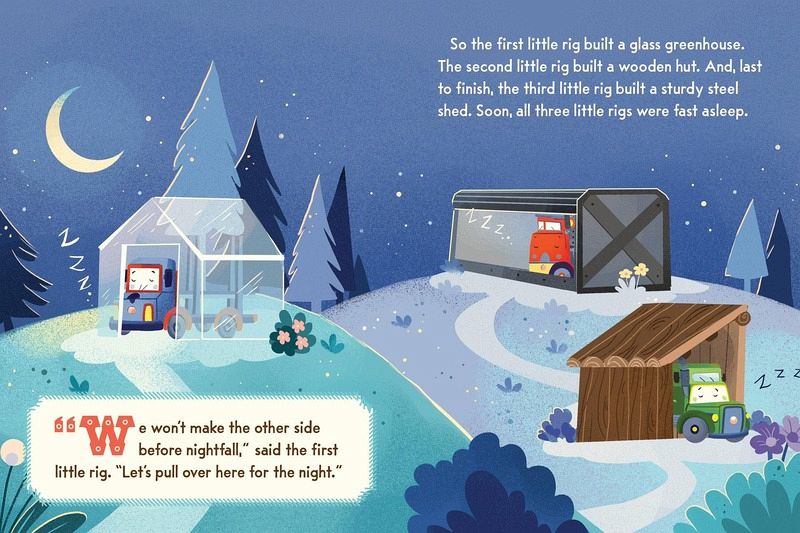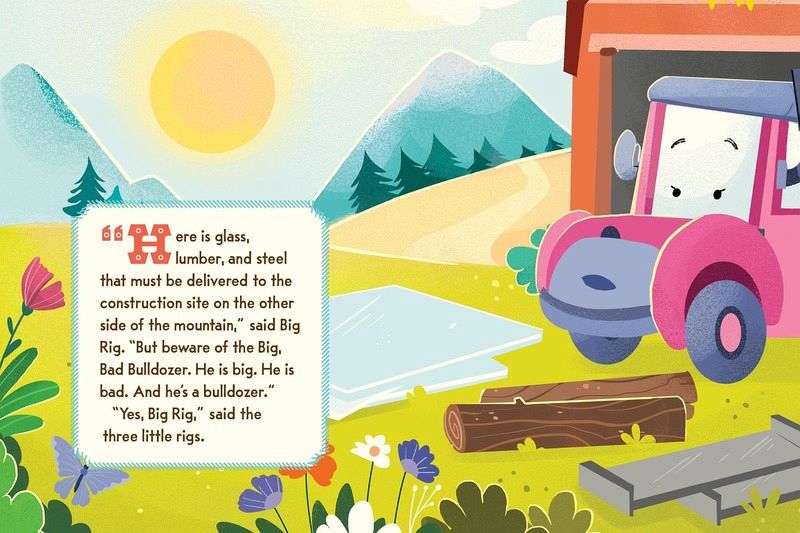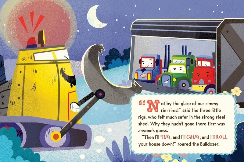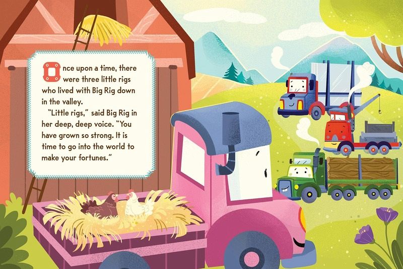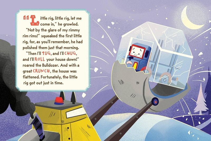 The story of the Three Little Pigs gets a Truck Tales twist! For kids who love all things cars and trucks comes The Three Little Rigs, the latest in the Truck Tales series! Big Rig sends out the Three Little Rigs with glass, lumber, and steel to take to the other side of the mountain. But when night falls and the little rigs make camp (in quickly-built houses of glass, lumber, and steel, of course), the Big Bad Bulldozer pays them a mischievous visit. "Little rigs, little rigs, let me come in!" comes the growl. "Not by the glare of our rimmy rim rims!" This rollicking truck mashup will get kids and adults alike wheel, wheel, wheeling all the way home! Find more truck twists on all your favorite fairytales, including: * Hansel and Diesel * Cylinderella * and more! Each book is constructed of sturdy, durable board, perfect for little hands and fingers. With magical illustrations and easy-to-read type, this is one tale you'll be asked to read again and again!