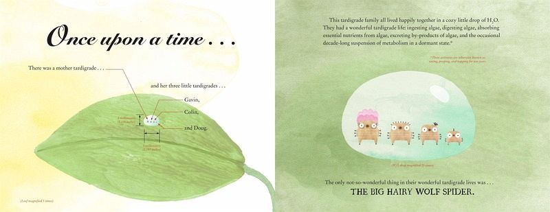 In this hilarious retelling of "The Three Little Pigs", three little tardigrades set out to find a home that's just right for them-all while watching out for the Big Hairy Wolf Spider. Gavin, Colin, and Doug live on a cozy little drop of H2O until one day, their mother tells them it's time for them to grow up and leave home. In search of the perfect place to settle down, the three little tardigrades (also known as "moss piglets") journey to an underwater ice cave, an erupting volcano, and even the moon! They can survive under extreme conditions, but can they avoid the Big Hairy Wolf Spider. . .? Humor and scientific facts about these resilient microscopic creatures come together to remix a beloved story-with an unexpected twist (and tons of laughs)!