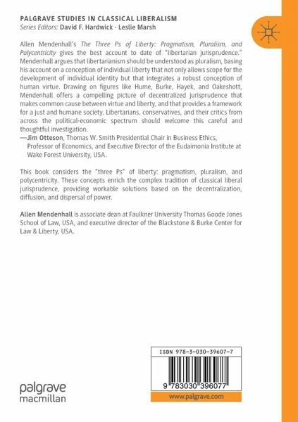 This book considers the "three Ps" of liberty: pragmatism, pluralism, and polycentricity. These concepts enrich the complex tradition of classical liberal jurisprudence, providing workable solutions based on the decentralization, diffusion, and dispersal of power.