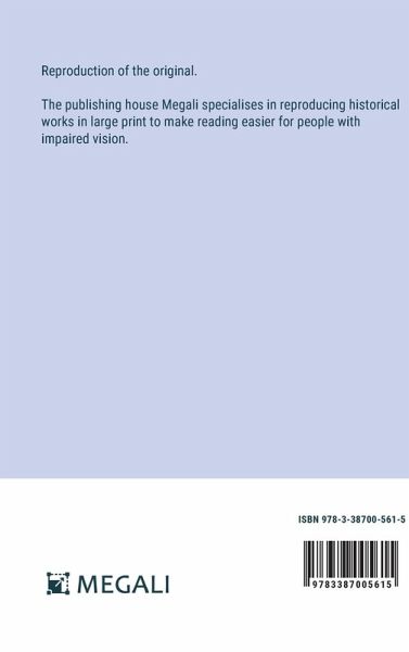 Reproduction of the original. The publishing house Megali specialises in reproducing historical works in large print to make reading easier for people with impaired vision.