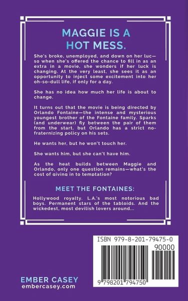 A sexy, standalone Fontaines novel with humor and heart... Maggie Blankenship is a hot mess-broke, unemployed, and down on her luck. So when she's offered the chance to fill in as an extra in a movie, she wonders if her luck is changing. At the very least, she sees it as an opportunity to inject some excitement into her oh-so-dull life, if only for a day. She has no idea how much her life is about to change. It turns out that the movie is being directed by Orlando Fontaine-the intense and mysterious youngest brother of the Fontaine family. Sparks (and underwear) fly between the pair of them from the start, but Orlando has a strict no-fraternizing policy on his sets. He wants her, but he won't touch her. She wants him, but she can't have him. As the heat builds between Maggie and Orlando, only one question remains-what's the cost of giving in to temptation? Meet the Fontaines: Hollywood royalty. L.A.'s most notorious bad boys. Permanent stars of the tabloids. And the wickedest, most devilish lovers around... THE FONTAINES SERIES: Book 0 - The Secret to Seduction (Felicia Liddle + Roman Everet) Book 1 - The Sweet Taste of Sin (Ashlyn Worth + Dante Fontaine) Book 2 - The Lies Between the Lines (Emilia Torres + Luca Fontaine) Book 3 - The Mystery of You (Edie Marshall + Rafe Fontaine) Book 4 - The Thrill of Temptation (Maggie Blankenship + Orlando Fontaine)