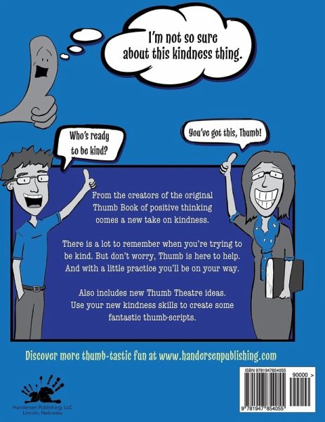 Thumb says, "Teaching kindness is awesome!" From the creators of the original Thumb Book of positive thinking comes a new take on teaching kindness, empathy, and working together. There is a lot to rememeber when you're trying to be kind. But don't worry, Thumb is here to help. And with a little practice you'll be on your way! * Practical situations teaching kindness * Fully illustrated (authors are caricatures!) * Also includes new Thumb Theatre ideas * Use your new kindness skills to create some fantastic thumb-scripts.