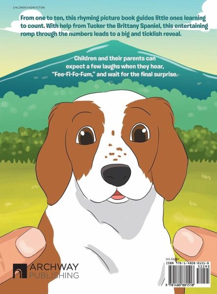 From one to ten, this rhyming picture book guides little ones learning to count. With help from Tucker the Brittany Spaniel, this entertaining romp through the numbers leads to a big and ticklish reveal. Children and their parents can expect a few laughs when they hear, "Fee-Fi-Fo-Fum," and wait for the final surprise.
