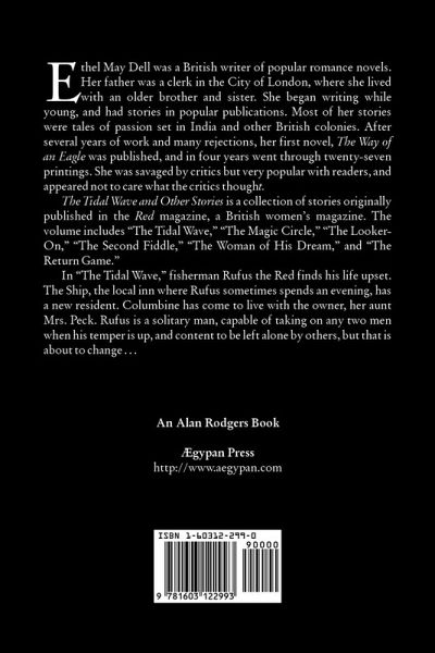 Ethel May Dell was a British writer of popular romance novels. Her father was a clerk in the City of London, where she lived with an older brother and sister. She began writing while young, and had stories in popular publications. Most of her stories were tales of passion set in India and other British colonies. After several years of work and many rejections, her first novel, The Way of an Eagle was published, and in four years went through twenty-seven printings. She was savaged by critics but very popular with readers, and appeared not to care what the critics thought. In "The Tidal Wave", fisherman Rufus the Red finds his life upset. The Ship, the local inn where Rufus sometimes spends an evening, has a new resident. Columbine has come to live with the owner, her aunt Mrs. Peck. Rufus is a solitary man, capable of taking on any two men when his temper is up, and content to be left alone by others, but that is about to change . . .