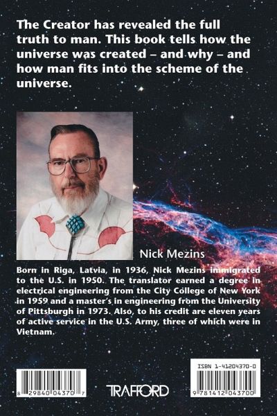 How was the universe created, and why? What is the role of man on Earth, and that of intelligent beings on other planets, in it? What is life like on some other planets? Why is man here, what is expected of him? These are some of the questions that this book answers. The translator considers the material in this book as religion and philosophy of life for people who are searching for the full truth and are willing to think for themselves and to question commonly accepted beliefs. It tells how man should live so that it would be good for everyone, and so that Christ's statement about "Paradise on Earth" would indeed come true. The part dealing with religion can be divided into two broad categories. The first one explains, clarifies, and in a few cases supplements the concepts which the Prophets of the past, such as Buddha, Christ, Indra, Mohammed, Moses, Zoroaster, and others proclaimed. The second part tells what the Prophets of the past could not tell back then, because the humanity of that time would not have understood them. Now that humanity's science is much further advanced, The Almighty has decided to reveal the complete truth about the universe. Here the latest scientific knowledge is brought in, and hints are given beyond the current knowledge of science. This book tells about and explains The Almighty's religion of the universe. This in turn entails the reason for the creation of the universe, how the universe is being created and governed, and, yes, the very significant role which man on Earth is expected to play in this process. Examples are given from intelligent life on other planets and much is said about how man should live and what he should not do. There are stories that help to illustrate the points. The Almighty's religion differs dramatically from all other religions currently practiced on Earth. It recognizes and acknowledges all other religions, it does not require an individual to join it. It does not threaten or condemn the "nonbelievers," it permits, it insists on each individual choosing freely for himself or herself. It merely provides some truly thought provoking material to ponder.