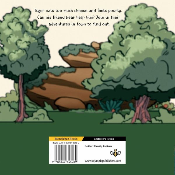 Tiger eats too much cheese and feels poorly. Can his friend bear help him? Join in their adventures in town to find out.