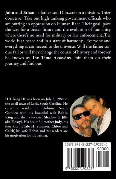 John and Ethan.. a father-son Duo..are on a mission. Thier objective: Take out high ranking government officials who are putting an oppression on Human Race. Their goal: pave the way for a better future and the evolution of humanity where there's no need for military or law enforcement..The world is at peace and in a state of harmony . Everyone and everything is connected to the universe. Will the father son duo fail or will they change the course of history and forever be known as The Time Assassins....join them on their journey and find out.