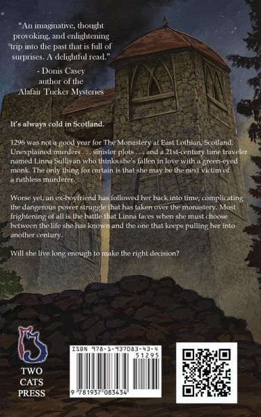 "It's always cold in Scotland." 1296 was not a good year for The Monastery at East Lothian, Scotland. Unexplained murders . . . sinister plots . . . and a 21st-century time traveler named Linna Sullivan who thinks she's fallen in love with a green-eyed monk. The only thing for certain is that she may be the next victim of a ruthless murderer. Worse yet, an ex-boyfriend has followed her back into time, complicating the dangerous power struggle that has taken over the monastery. Most frightening of all is the battle that Linna faces when she must choose between the life she has known and the one that keeps pulling her into another century. Will she live long enough to make the right decision?