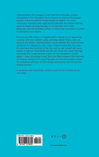 Untouched by the ravages of war and the politically volatile atmosphere, the Villa della Pace remains an island of European society in the tiny British Protectorate of Aderra. Its circle religiously maintain their rigid social calendar and allow nothing, save the death of King George VI, to interfere with their pleasures. But the flawless surface of their lives conceals a turmoil of deception and desire . . . Flo has just left school in England and is flying out to spend the summer with her mother Lydia, and step-father Harry, who, as head of the British Administration, must oversee the forthcoming handover to indigenous rule. Lydia is determined that this year Flo will have the summer of her life, just as she herself did years earlier in Nairobi. And believing she can relive her youth through unworldly Flo, Lydia devises a plan for her daughter's social debut - even providing a man. But she little suspects the intensity of emotion behind Flo's quiet façade, nor the irrevocable impact her presence will have on the whole community over those few stifling months . . . A powerful and beautifully written novel by Ann Schlee at her very best.