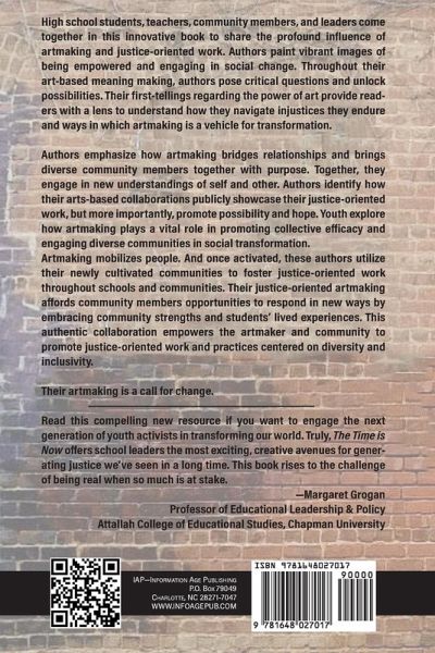 High school students, teachers, community members, and leaders come together in this innovative book to share the profound influence of artmaking and justice-oriented work. Authors paint vibrant images of being empowered and engaging in social change. Throughout their art-based meaning making, authors pose critical questions and unlock possibilities. Their first-tellings regarding the power of art provide readers with a lens to understand how they navigate injustices they endure and ways in which artmaking is a vehicle for transformation. Their artmaking is a call for change. Authors emphasize how artmaking bridges relationships and brings diverse community members together with purpose. Together, they engage in new understandings of self and other. Authors identify how their arts-based collaborations publicly showcase their justice-oriented work, but more importantly, promote possibility and hope. Youth explore how artmaking plays a vital role in promoting collective efficacy and engaging diverse communities in social transformation. Artmaking mobilizes people. And once activated, these authors utilize their newly cultivated communities to foster justice-oriented work throughout schools and communities. Their justice-oriented artmaking affords community members opportunities to respond in new ways by embracing community strengths and students' lived experiences. This authentic collaboration empowers the artmaker and community to promote justice-oriented work and practices centered on diversity and inclusivity.