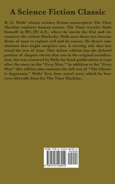 H. G. Wells¿ classic science fiction masterpiece The Time Machine explores human nature. The Time Traveler finds himself in 802,701 A.D., where he meets the peaceful Eloi and encounters the violent Morlocks. Wells uses these two descendants of man to explore evil and its causes, drawing conclusion that might surprise you in this riveting tale that has stood the test of time. This deluxe edition has the deleted portion of chapter eleven that ran in the original serialization, but was removed for book publication.