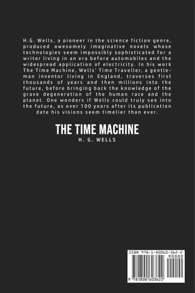 Do you want to read The Time Machine? If so then keep reading... H.G. Wells, a pioneer in the science fiction genre, produced awesomely imaginative novels whose technologies seem impossibly sophisticated for a writer living in an era before automobiles and the widespread application of electricity. In his work The Time Machine, Wells' Time Traveller, a gentleman inventor living in England, traverses first thousands of years and then millions into the future, before bringing back the knowledge of the grave degeneration of the human race and the planet. One wonders if Wells could truly see into…mehr