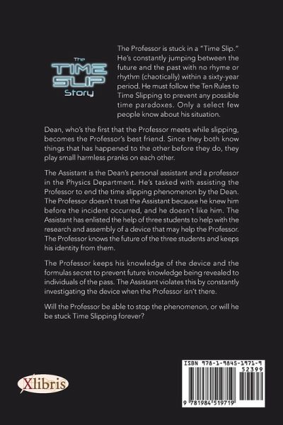 The Professor is stuck in a time slip. Hes constantly jumping between the future and the past with no rhyme or rhythm (chaotically) within a sixty-year period. He must follow the ten rules of time slipping to prevent any possible time paradoxes. Only a select few people know about his situation. The Dean, the first person that the Professor meets while slipping, becomes the Professors best friend. Since they both know things that has happened to the other before they do, they play small harmless pranks on each other. The Assistant is the Deans personal assistant and a professor in the physics department. Hes tasked with assisting the Professor to end the time slipping phenomena by the Dean. The Professor doesnt trust the Assistant because he knew him before the incident occurred, and he doesnt like him. The Assistant has enlisted the help of three students to help with the research and assembly of a device that may help the Professor. The Professor knows the future of the three students and keeps his identity from them. The Professor keeps his knowledge of the device and the formulas secret to prevent future knowledge being revealed to individuals of the pass. The Assistant violates this by constantly investigating the device when the Professor isnt there. Will the Professor be able to stop the phenomena, or will he be stuck time slipping forever?