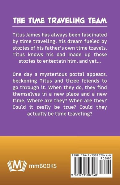Titus James has always been fascinated by time traveling, his dream fueled by stories of his father's own time travels. Titus knows his dad made up those stories to entertain him, and yet... One day a mysterious portal appears, beckoning Titus and three friends to go through it. When they do, they find themselves in a new place and a new time. Where are they? When are they? Could it really be true? Could they actually be time traveling?
