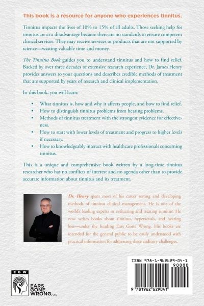 This book is a resource for anyone who experiences tinnitus. Tinnitus impacts the lives of 10% to 15% of all adults. Those seeking help for tinnitus are at a disadvantage because there are no standards to ensure competent clinical services. They may receive services or products that are not supported by science-wasting valuable time and money. The Tinnitus Book guides you to understand tinnitus and how to find relief. Backed by over three decades of extensive research experience, Dr. James Henry provides answers to your questions and describes credible methods of treatment that are supported by years of research and clinical implementation. In this book, you will learn: What tinnitus is, how and why it affects people, and how to find relief. How to distinguish tinnitus problems from hearing problems. Methods of tinnitus treatment with the strongest evidence for effectiveness. How to start with lower levels of treatment and progress to higher levels if necessary. How to knowledgeably interact with healthcare professionals concerning tinnitus. This is a unique and comprehensive book written by a long-time tinnitus researcher who has no conflicts of interest and no agenda other than to provide accurate information about tinnitus and its treatment.