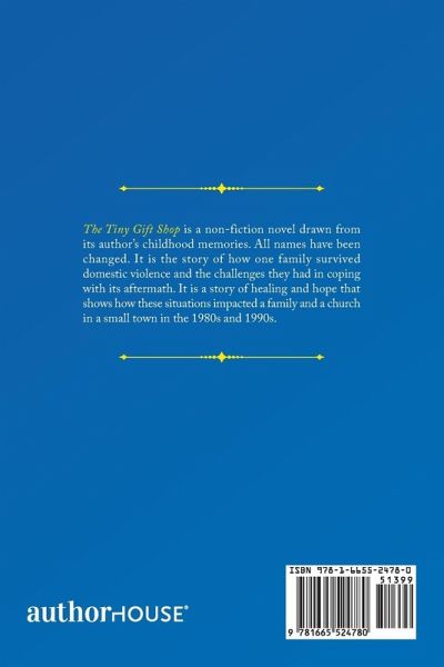 The Tiny Gift Shop is a non-fiction novel drawn from its author's childhood memories. All names have been changed. It is the story of how one family survived domestic violence and the challenges they had in coping with its aftermath. It is a story of healing and hope that shows how these situations impacted a family and a church in a small town in the 1980s and 1990s.