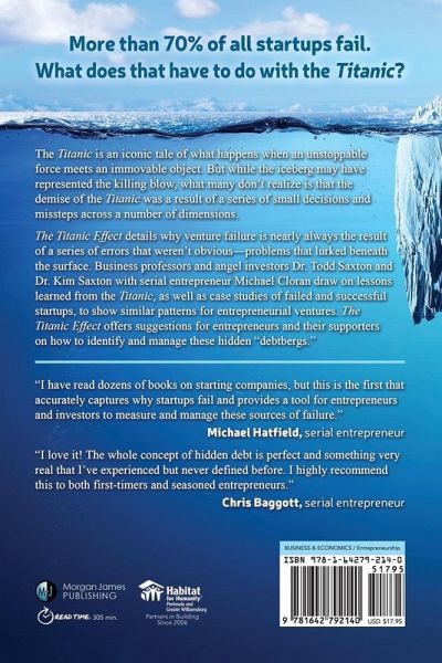 Unlike other "how-to" entrepreneurship books, The Titanic Effect uses stories of success and failure to reveal the often-overlooked "icebergs" that sink startups.