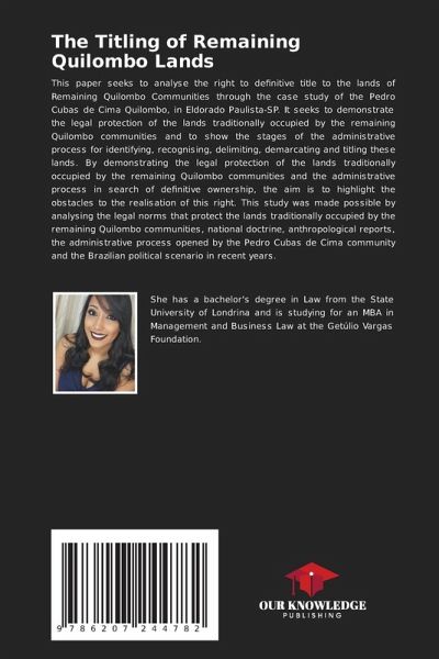 This paper seeks to analyse the right to definitive title to the lands of Remaining Quilombo Communities through the case study of the Pedro Cubas de Cima Quilombo, in Eldorado Paulista-SP. It seeks to demonstrate the legal protection of the lands traditionally occupied by the remaining Quilombo communities and to show the stages of the administrative process for identifying, recognising, delimiting, demarcating and titling these lands. By demonstrating the legal protection of the lands traditionally occupied by the remaining Quilombo communities and the administrative process in search of definitive ownership, the aim is to highlight the obstacles to the realisation of this right. This study was made possible by analysing the legal norms that protect the lands traditionally occupied by the remaining Quilombo communities, national doctrine, anthropological reports, the administrative process opened by the Pedro Cubas de Cima community and the Brazilian political scenario in recent years.