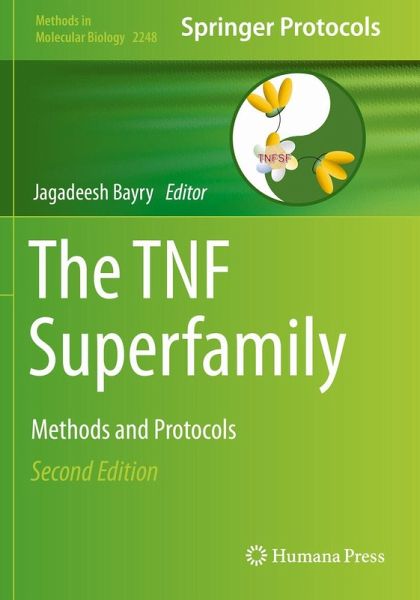 Signaling in TNFSF15-mediated Suppression of VEGF Production in Endothelial Cells.- Sensitization of Airway Epithelial Cells to Toxin-Induced Death by TNF Superfamily Cytokines.- Inhibition of Chondroitin Sulfate Proteoglycans by APRIL.- Induction of Antigen-independent Proliferation of Regulatory T-cells by TNF superfamily ligands OX40L and GITRL.- Transition from TNF-induced Inflammation to Death Signaling.- Analysis of FcgR-Dependent Agonism Of Antibodies Specific for Receptors of the Tumor Necrosis Factor (TNF) Receptor Superfamily (TNFRSF).- Generation and Evaluation of Bispecific anti-TNF Antibodies Based on Single-Chain VHH Domains.- In Vitro Physical and Functional Interaction Assays to Examine the Binding of Progranulin Derivative Atsttrin to TNFR2 and its anti-TNF activity.- Fluorescence Based TNFR1 Biosensor for Monitoring Receptor Structural and Conformational Dynamics and Discovery of Small Molecule Modulators.- Production of Multi-Subtype Influenza Virus-Like Particles by Molecular Fusion with BAFF or APRIL for Vaccine Development.- Experimental Methods for the Immunological Characterization of Paradoxical Psoriasis Reactions Induced by TNF- Biologics.- Methods for the Administration of EDAR Pathway Modulators in Mice.- Analysis of Ligand-Receptor Interactions Using Bioluminescent TNF Superfamily (TNFSF) Ligand Fusion Proteins.- Monitoring Atsttrin-mediated Inhibition of TNF /NF- beta Activation through in vivo Bioluminescence Imaging.- The use of Murine Infection Models to Investigate the Protective Role of TNF in Central Nervous System Tuberculosis.- Identification of CD137- and CD137L-expressing Cells in EL-4 Tumor.- -Expression Profiling of Tumor Necrosis Factor Superfamily Ligands mRNA in Healthy and Injured Murine Kidneys.- Analysis of Lymphotoxin Alpha Expression in Human Retina and Generation of Expression Vectors to Functional Characterization of Polymorphisms in the Tumor Necrosis Factor Locus.- Detection of TNF- Protein in Extracellular Vesicles Derived from Tumor Cells by Western Blotting.- Expression of TNFRs by B and T lymphocytes in Tumor-Draining Lymph Nodes.- Methods for Evaluation of TNF- Inhibition Effect.