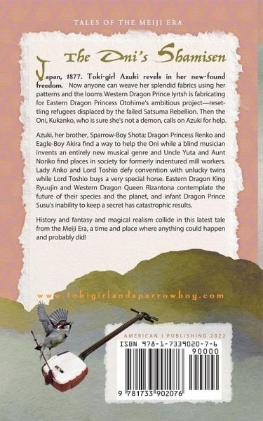 Japan, 1877. Toki-girl Azuki revels in her new-found freedom. Now anyone can weave her splendid fabrics using her patterns and the looms Western Dragon Prince Iyrtsh is fabricating for Eastern Dragon Princess Otohime's ambitious project-resettling refugees displaced by the failed Satsuma Rebellion. Then the Oni, Kukanko, who is sure she's not a demon, calls on Azuki for help. Azuki, her brother, Sparrow-Boy Shota; Dragon Princess Renko and Eagle-Boy Akira find a way to help the Oni while a blind musician invents an entirely new musical genre and Uncle Yuta and Aunt Noriko find places in society for formerly indentured mill workers. Lady Anko and Lord Toshio defy convention with unlucky twins while Lord Toshio buys a very special horse. Eastern Dragon King Ryuujin and Western Dragon Queen Rizantona contemplate the future of their species and the planet, and infant Dragon Prince Susu's inability to keep a secret has catastrophic results. History and fantasy and magical realism collide in this latest tale from the Meiji Era, a time and place where anything could happen and probably did! Japan, 1877. Toki-girl Azuki revels in her new-found freedom. Now anyone can weave her splendid fabrics using her patterns and the looms Western Dragon Prince Iyrtsh is fabricating for Eastern Dragon Princess Otohime's ambitious project-resettling refugees displaced by the failed Satsuma Rebellion. Then the Oni, Kukanko, who is sure she's not a demon, calls on Azuki for help. Azuki, her brother, Sparrow-Boy Shota; Dragon Princess Renko and Eagle-Boy Akira find a way to help the Oni while a blind musician invents an entirely new musical genre and Uncle Yuta and Aunt Noriko find places in society for formerly indentured mill workers. Lady Anko and Lord Toshio defy convention with unlucky twins while Lord Toshio buys a very special horse. Eastern Dragon King Ryuujin and Western Dragon Queen Rizantona contemplate the future of their species and the planet, and infant Dragon Prince Susu's inability to keep a secret has catastrophic results. History and fantasy and magical realism collide in this latest tale from the Meiji Era, a time and place where anything could happen and probably did!