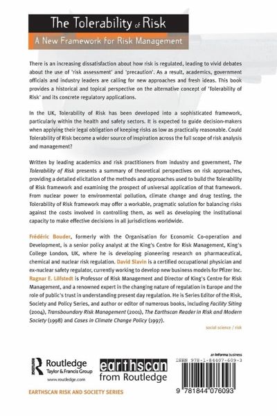 There is an increasing dissatisfaction about how risk is regulated, leading to vivid debates about the use of 'risk assessment' and 'precaution'. As a result, academics, government officials and industry leaders are calling for new approaches and fresh ideas. This book provides a historical and topical perspective on the alternative concept of 'Tolerability of Risk' and its concrete regulatory applications. In the UK, Tolerability of Risk has been developed into a sophisticated framework, particularly within the health and safety sectors. It is expected to guide decision-makers when applying their legal obligation of keeping risks as low as practically reasonable. Could Tolerability of Risk become a wider source of inspiration across the full scope of risk analysis and management? Written by leading academics and risk practitioners from industry and government, The Tolerability of Risk presents a summary of theoretical perspectives on risk approaches, providing a detailed elicitation of the methods and approaches used to build the Tolerability of Risk framework and examining the prospect of universal application of that framework. From nuclear power to environmental pollution, climate change and drug testing, the Tolerability of Risk framework may offer a workable, pragmatic solution for balancing risks against the costs involved in controlling them, as well as developing the institutional capacity to make effective decisions in all jurisdictions worldwide.