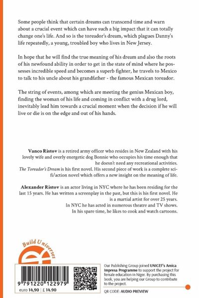 Some people think that certain dreams can transcend time and warn about a crucial event which can have such a big impact that it can totally change one's life. And so is the toreador's dream, which plagues Danny's life repeatedly, a young, troubled boy who lives in New Jersey. In hope that he will find the true meaning of his dream and also the roots of his newfound ability in order to get in the state of mind where he possesses incredible speed and becomes a superb fighter, he travels to Mexico to talk to his uncle about his grandfather - the famous Mexican toreador. The string of events, among which are meeting the genius Mexican boy, finding the woman of his life and coming in conflict with a drug lord, inevitably lead him towards a crucial moment when the decision if he will live or die is on the edge and out of his hands. Vanco Ristov is a retired army officer who resides in New Zealand with his lovely wife and overly energetic dog Bonnie who occupies his time enough that he doesn't need any recreational activities. The Toreador's Dream is his first novel. His second piece of work is a complete scifi/action novel which offers a new insight on the meaning of life. Alexander Ristov is an actor living in NYC where he has been residing for the last 15 years. He has written a screenplay in the past, but this is his first novel. He is a martial artist for over 25 years. In NYC he has acted in numerous theatre and TV shows. In his spare time, he likes to cook and watch cartoons.