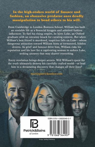 In the high-stakes world of finance and fashion, an obsessive predator uses deadly manipulation to bend others to his will. From Cambridge to London Business School, William has built an enviable life as a financial kingpin and admired fashion influencer. To fuel his rising empire, he hires Luke, an Oxford graduate with an uncanny knack for curating content. But when William's best friend is murdered, suspicion falls on Luke-whose dangerous attraction toward William hints at tormented, hidden desires. As grief and honour drive him, William risks his reputation and his love for a captivating woman to seduce Luke, seeking answers that may shatter everything. Every revelation brings deeper secrets. Will William's quest for the truth ultimately destroy his carefully crafted world-or lead him to a devastating discovery that changes all their lives?