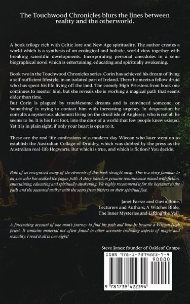 The Touchwood Chronicles blurs the lines between reality and the otherworld. A book trilogy rich with Celtic lore and New Age spirituality. The author creates a world which is a synthesis of an ecological and holistic world view, together with breaking scientific developments. Incorporating personal anecdotes in a semi biographical novel which is entertaining, educating and spiritually awakening. Book two in the Touchwood Chronicles series. Corin has achieved his dream of living a self-sufficient lifestyle, in an isolated part of Ireland. There he meets a fellow druid who has spent his life living off the land. The comely High Priestess from book one continues to mentor him, but she reveals she is working a magical path that seems older than time. But Corin is plagued by troublesome dreams and is convinced someone, or 'something' is trying to contact him with increasing urgency. In desperation he consults a mysterious alchemist living on the druid isle of Anglesey, who is not all he seems to be. It is his first foot, into the door of a world that few people knew existed. Yet it is in plain sight, if only your heart is open to it. These are the real-life confessions of a modern-day Wiccan who later went on to establish the Australian Collage of Druidry, which was dubbed by the press as the Australian real-life Hogwarts. But which is true, and which is fiction? You decide.