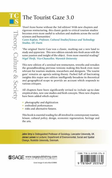 This thoroughly updated edition of John Urry's seminal contribution to tourist studies will engage a whole new generation of scholars. The extensive addition of new material absorbs and expands upon new insights from within this shifting field of study to develop an enhanced understanding of the tourist gaze. The fresh input of Jonas Larsen adds a renewed vibrancy to the debates which are, as ever, communicated in a brisk, inclusive and lucid fashion, and will ensure that The Tourist Gaze book retains its relevance for students and academics across the world