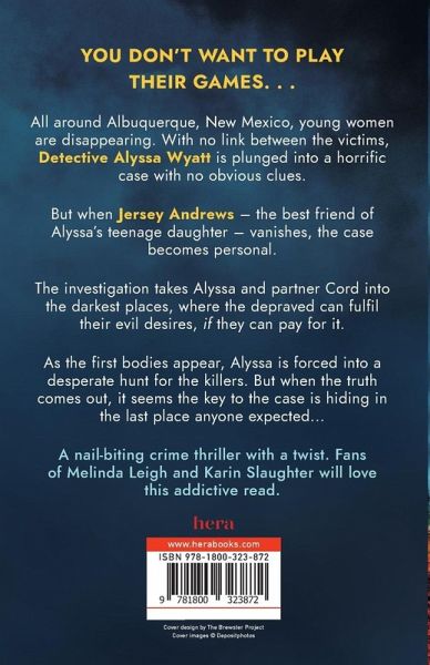 'I was on the edge of my seat every time I turned the page!! One of the best crime books I have ever read!!!' Reader Review You don't want to play their games... All around Albuquerque, New Mexico, young women are going missing, seemingly vanished into thin air. With no link between the victims, Detective Alyssa Wyatt is quickly plunged into a horrifying case with no obvious clues. And when Jersey Andrews, the best friend of Alyssa's teenage daughter, Holly, joins the list of vanished girls, the case becomes personal. But this investigation will lead Alyssa and partner Cord into the most sinister depths of humanity; an evil place where life is expendable, and where the depraved can fulfil their darkest desires - if they have the money to pay for it. As the first bodies appear, abandoned on the streets, Alyssa is forced into a frantic hunt to track down the killers - before more innocent women lose their lives. But when the truth comes out, it seems that the key to solving the case was hiding in the last place anyone expected... A dark, tension-filled and absolutely nail-biting crime thriller with a twist - this one will have you reading until the small hours. Fans of Robert Bryndza, Melinda Leigh and Lisa Regan will not want to miss this addictive read. Readers can't get enough of The Toybox: 'This book is, in short, incredible... I was completely invested in all the main characters and didn't see the twist coming.' Reader Review 'Don't plan to do anything else until you finish reading this book... intense, suspenseful and realistic... Excellent read.' Reader Review 'OMG!!!... an edge of your seat page turner with lots of action...and many twists and turns with one that most won't see coming.' Reader Review 'I was blown away...I don't think I took a breath the whole time I was reading.' Reader Review 'There were many twists in the story that really surprised me! This was a book that I wished hadn't ended!' Reader Review 'OMG WHAT A READ!!!...Plenty of heart in your mouth moments and packed with tension and suspense. This crime series is one of the best I have read' Reader Review 'a dark and thrilling crime read that will have you on the edge of your seat... This is a book you NEED to add to your TBR pile.' Reader Review 'HOLY COW! This book will take you for the ride of your life...I was left stunned when the truth was revealed' Reader Review 'There is just so much to love about this series..A dark and chilling read that will have you hanging on for dear life!' Reader Review 'raw, gritty...one of the best crime fiction novels I've read this year.' Reader Review 'what a gritty fast-paced novel, I couldn't put it down!...gets your heartbeat racing' Reader Review 'I have not read a thriller that I felt so physically and emotionally connected to...started with action and didn't stop until the last page... I will be recommending this one for fans of thrillers and crime reads for a long time.' Reader Review 'Creepy, spooky, and fill of adrenaline... Highly recommended!' Reader Review 'a very tense and nail biting book...I ended up reading the book in one night - didn't want it to finish' Reader Review 'Page-turningly brilliant...can't recommend it highly enough' Reader Review 'kept you guessing until the end...It was a dark story that never let you catch you