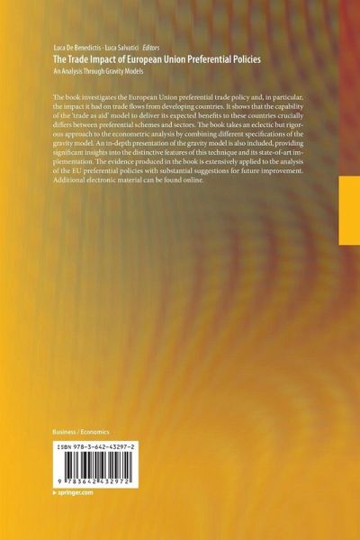 The book investigates the EU preferential trade policy and, in particular, the impact it had on trade flows from developing countries. It shows that the capability of the "trade as aid" model to deliver its expected benefits to these countries crucially differs between preferential schemes and sectors. The book takes an eclectic but rigorous approach to the econometric analysis by combining different specifications of the gravity model. An in-depth presentation of the gravity model is also included, providing significant insights into the distinctive features of this technique and its state-of-art implementation. The evidence produced in the book is extensively applied to the analysis of the EU preferential policies with substantial suggestions for future improvement. Additional electronic material to replicate the book's analysis (datasets and Gams and Stata 9.0 routines) can be found in the Extra Materials menu on the website of the book.
