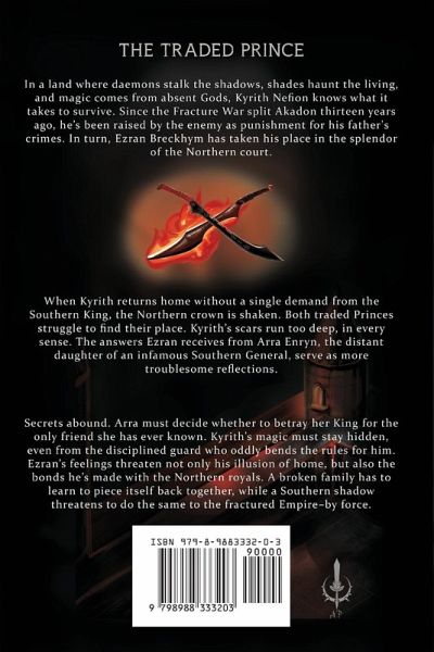 In a land where daemons stalk the shadows, shades haunt the living, and magic comes from absent Gods, Kyrith Nefion knows what it takes to survive. Since the Fracture War split Akadon thirteen years ago, he's been raised by the enemy as punishment for his father's crimes. In turn, Ezran Breckhym has taken his place in the splendor of the Northern court. When Kyrith returns home without a single demand from the Southern King, the Northern crown is shaken. Both traded Princes struggle to find their place. Kyrith's scars run too deep, in every sense. The answers Ezran receives from Arra Enryn, the distant daughter of an infamous Southern General, serve as more troublesome reflections. Secrets abound. Arra must decide whether to betray her King for the only friend she has ever known. Kyrith's magic must stay hidden, even from the disciplined guard who oddly bends the rules for him. Ezran's feelings threaten not only his illusion of home, but also the bonds he's made with the Northern royals. A broken family has to learn to piece itself back together, while a Southern shadow threatens to do the same to the fractured Empire-by force.