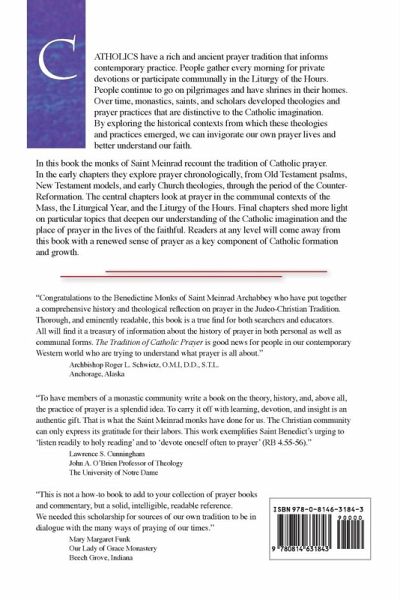ATHOLICS have a rich and ancient prayer tradition that informs contemporary practice. People gather every morning for private devotions or participate communally in the Liturgy of the Hours. People continue to go on pilgrimages and have shrines in their homes. Over time, monastics, saints, and scholars developed theologies and prayer practices that are distinctive to the Catholic imagination. By exploring the historical contexts from which these theologies and practices emerged, we can invigorate our own prayer lives and better understand our faith.In this book the monks of Saint Meinrad recount the tradition of Catholic prayer. In the early chapters they explore prayer chronologically, from Old Testament psalms, New Testament models, and early Church theologies, through the period of the Counter- Reformation. The central chapters look at prayer in the communal contexts of the Mass, the Liturgical Year, and the Liturgy of the Hours. Final chapters shed more light on particular topics that deepen our understanding of the Catholic imagination and the place of prayer in the lives of the faithful. Readers at any level will come away from this book with a renewed sense of prayer as a key component of Catholic formation and growth.